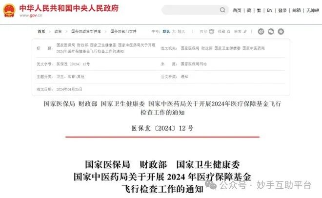 4月25日,国家医保局等三部门联合印发了《国家医保局 财政部 国家卫生健康委 国家中医药局关于开展2024年医疗保障基金飞行检查工作的通知》,决定在全国范围开展2024年医疗保障基金飞行检查工作。