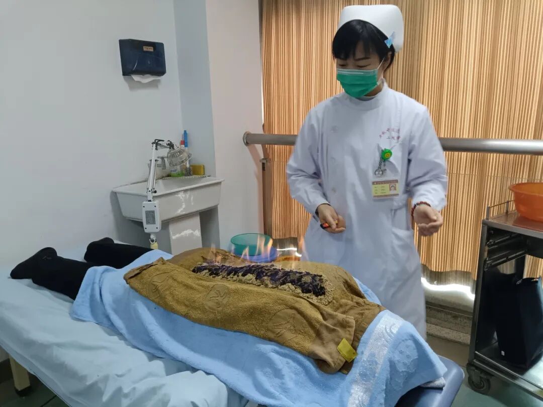 “这是张力牵引针法,是在传统的中医理论基础上,从力学均衡等方面考虑布针方法,通过一根定针与其他针灸针的‘排针布阵’,有目的、有方向性地通过筋膜层、经脉,将力、气、卫阳传达到目标层次。”该院老年病一科主任医师俞红五介绍说。走进门诊,一阵“艾”香扑鼻,督脉灸、温针灸、脐灸、隔物灸等特色灸法也被广泛运用。