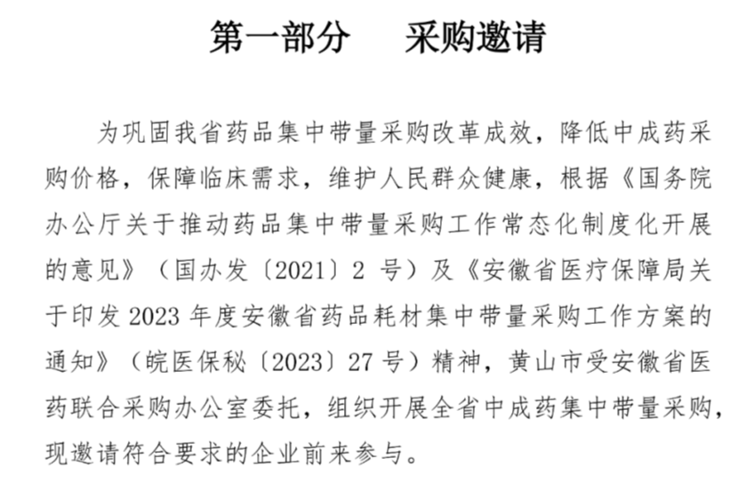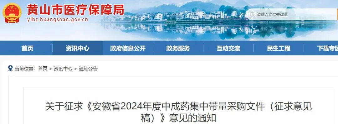 根据安徽省医疗保障局有关工作安排,为稳妥有序推进我省2024年度中成药集中带量采购工作,现就《安徽省2024年度中成药集中带量采购文件(征求意见稿)》公开征求意见。