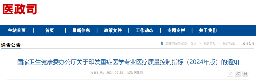 9月23日,国家卫健委发布《国家卫生健康委办公厅关于印发重症医学专业医疗质量控制指标(2024年版)的通知》。 省、自治区、直辖市及新疆生产建设兵团卫生健康委: 为进一步加强医疗质量管理,规范临床诊疗行为,提升医疗服务同质化水平,我委组织对重症医学专业医疗质量控制指标进行了修订,形成了《重症医学专业医疗质量控制指标(2024年版)》。现印发给你们,供各级卫生健康行政部门、相关专业质控组织和医疗机构在医疗质量管理与控制工作中使用。 本通知自印发之日起施行。《重症医学专业医疗质量控制指标(2015年版)》同时废止。 通知明确,降钙素原、白介素-6,不再纳入ICU抗菌药物治疗前病原学送检相关标志物检验统计。 对比废止前的2015版,可以看到2024版的相关调整。 2015版、ICU抗菌药物治疗前病原学送检率 定义:以治疗为目的使用抗菌药物的ICU住院患者,使用抗菌药物前病原学检验标本送检病例数占同期使用抗菌药物治疗病例总数的比例。病原学检验标本包括:各种微生物培养、降钙素原、白介素-6等感染指标的血清学检验。 计算公式: ICU抗菌药物治疗前病原学送检率=(使用抗菌药物前病原学检验标本送检病例数/同期使用抗菌药物治疗病例总数) ×100% 意义:反映ICU患者抗菌药物使用的规范性。 2024版、ICU抗菌药物治疗前病原学送检率 定义:以治疗为目的使用抗菌药物前病原学送检的ICU患者人数占同期使用抗菌药物治疗的ICU 患者总人数的比例。 计算公式: ICU抗菌药物治疗前病原学送检率=(以治疗为目的使用抗菌药物前病原学送检的ICU患者人数/同期使用抗菌药物治疗病例总数) ×100% 意义:反映ICU患者抗菌药物使用的规范性。 说明:本指标统计的病原学检验需在药物治疗前开具医嘱并完成相关标本采集。具体项目包括:(1)微生物培养及药敏试验;(2)显微镜检查;(3)免疫学检测;(4)分子快速诊断;(5)相关标志物检验(不包括降钙素原、白介素-6)。 2015版、ICU抗菌药物治疗前病原学送检率 定义:以治疗为目的使用抗菌药物的ICU住院患者,使用抗菌药物前病原学检验标本送检病例数占同期使用抗菌药物治疗病例总数的比例。病原学检验标本包括:各种微生物培养、降钙素原、白介素-6等感染指标的血清学检验。 计算公式: ICU抗菌药物治疗前病原学送检率=(使用抗菌药物前病原学检验标本送检病例数/同期使用抗菌药物治疗病例总数) ×100% 意义:反映ICU患者抗菌药物使用的规范性。 附:重症医学专业医疗质量控制指标(2024年版) 图文来源:国家卫健委 体外诊断价值圈