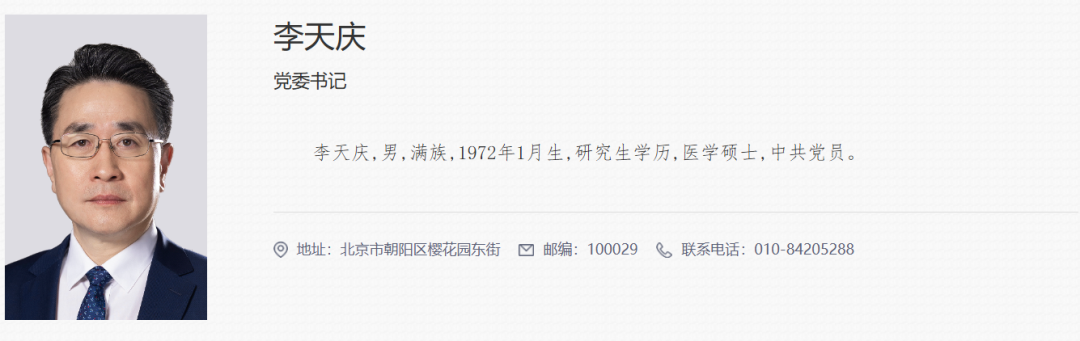 近日,中日友好医院官网“领导信息”栏目显示,李天庆已任中日友好医院党委书记。