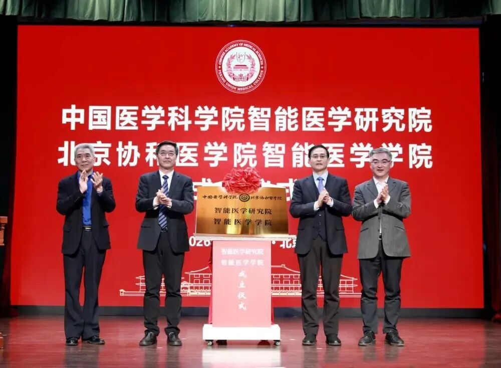 重点布局并突破专病智能体、多模态医学大模型、具身智能、智能药物研发、智慧医学教育等关键技术的研发和应用。 据“中国医学科学院新闻中心”消息,1月20日,中国医学科学院智能医学研究院与北京协和医学院智能医学学院成立仪式暨第六期协和燕京讲堂在协和壹号礼堂举行。 揭牌仪式 这一举措标志着中国医学科学院北京协和医学院(以下简称“院校”)在智能医学领域的系统性布局迈入新阶段,旨在整合优质资源,构建“医学+人工智能”深度融合的创新体系,致力于打造国家智能医学教育科技人才创新高地,为健康中国建设提供科技与人才支撑。