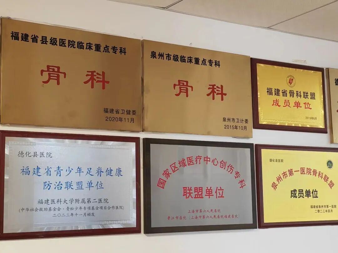 德化县医院骨科创建于1958年,是福建省县级医院较早一批独立的科室。当时以陈阳春老先生为代表的祖传中医骨伤及小夹板固定技术在群众中反馈良好。在1978年,陈阳春的《应用中西医结合治疗骨折近万例》获福建省科技大会科技成果奖,在县级医院实属不易,也为德化县医院骨科的发展打下了好基础。此后,林少泰主任、孙耀源主任带头初步奠定创伤骨科基础,陈金龙、陈天来、颜义哲主任等在原有基础上拓展创伤骨科、骨病、肢体畸形矫正等治疗范围……历经一代代人薪火相传,骨科既传承了优良的中医创伤骨科治疗方法,又引进新技术,逐步发展成为福建省临床重点专科、泉州市临床重点专科。如今,骨科团队有63人,高级职称14人,中级职称18人,硕士研究生5人,有2个病区,住院床位112张。