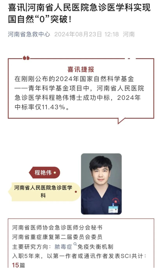 近日,一年一度的国家自然科学基金立项名单(以下简称“国自然”)正式公布,各大医院正在纷纷晒出成绩单。河南省人民医院急诊科:零突破郑州大学第三附属医院:郑州大学第二附属医院:河南中医药大学第一附属医院:消息来源:金水路7号站、河南省急救中心、郑州大学第三附属医院、郑州大学第二附属医院、河南省中医药大学第一附属医院