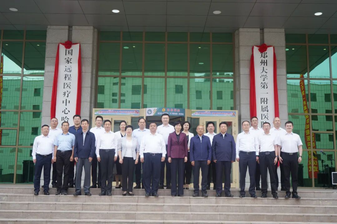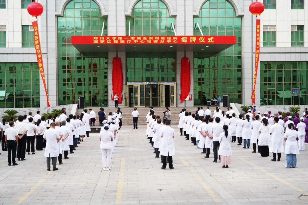 河南省卫健委党组副书记、副主任侯红,自治区卫健委党组副书记、主任于爱平,哈密市委副书记、市长吾拉木江·热依木,郑州大学第一附属医院党委书记王成增,市政府党组成员、副市长严俊杰等领导参加并揭牌。市政府党组成员、副市长滕春玲主持揭牌仪式。