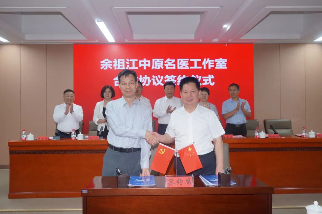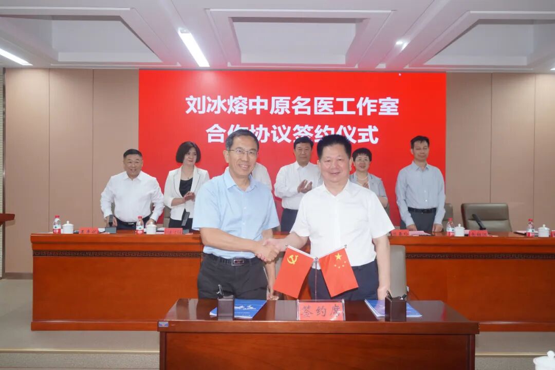 郑州大学第一附属医院党委副书记、副院长、中原名医赵杰教授,郑州大学第一附属医院党委副书记、副院长、中原名医余祖江教授,郑州大学第一附属医院消化病医学部、中原名医刘冰熔教授分别与我院党委副书记、院长刘道清签署“赵杰中原名医工作室”“余祖江中原名医工作室”“刘冰熔中原名医工作室”合作协议。