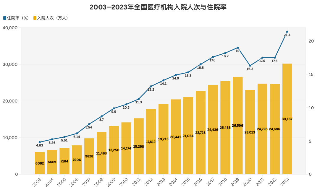 三联生活周刊:2003年时,我国的住院率才不到5%,这些年来,我国住院率的变化曲线是怎样的,是一个缓慢匀速上升的过程吗?是否有一些阶段增长得更快,是由什么因素造成的?