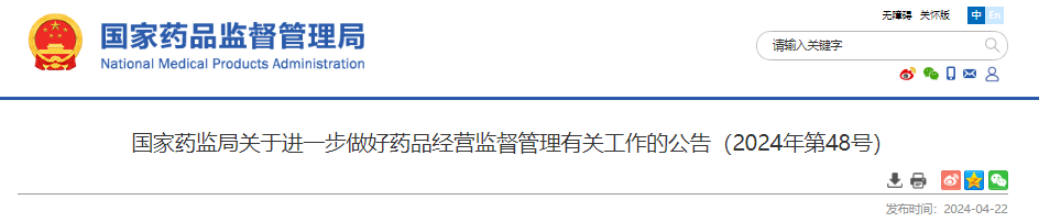 国家药监局关于进一步做好药品经营监督管理有关工作的公告