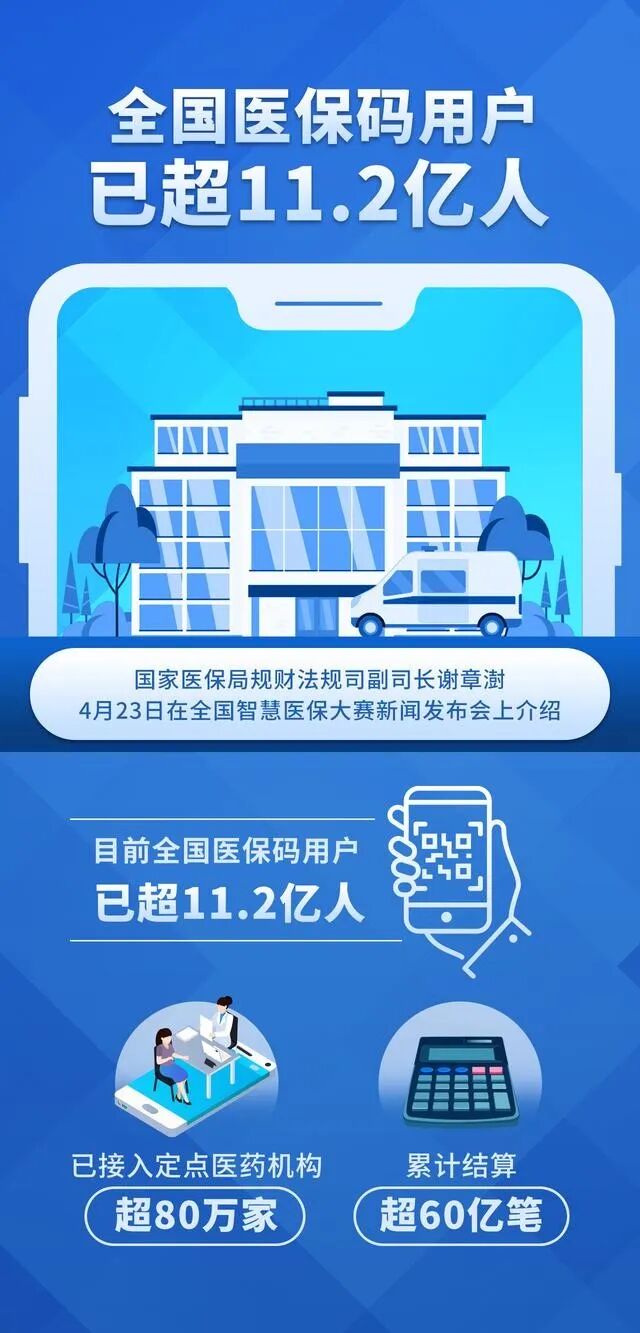 持医保码看病买药更方便。从去年开始,在全国范围内持续开展了针对医保码使用问题的“走流程、找堵点”活动,发动各级医保部门、定点医药机构,加快推动医保码从仅在结算环节可用,到可在预约挂号、签到就诊、诊疗检查、报告查询、药房取药等全流程使用,减少排队等待时间,提升看病买药体验。目前,医保码全国用户已超11.2亿,31个省(区、市)和新疆生产建设兵团均已支持使用,接入定点医药机构超过80万家,累计结算超过60亿笔。