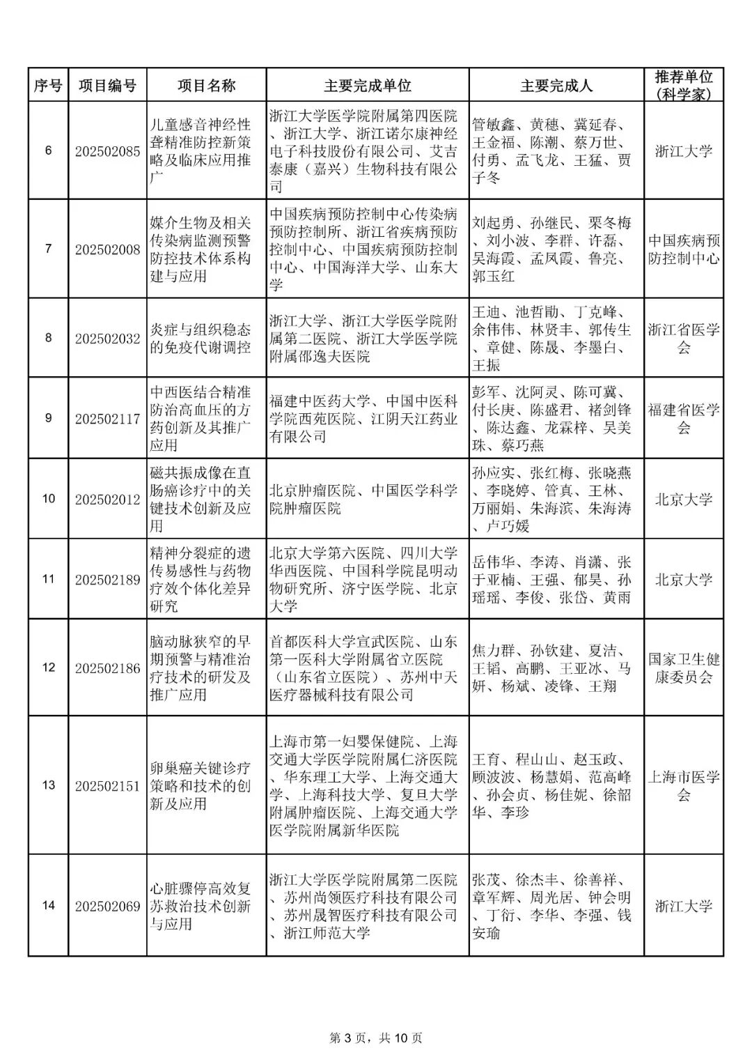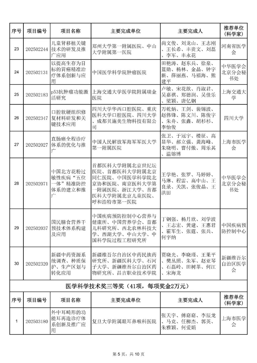 附件:2025年中华医学科技奖获奖项目