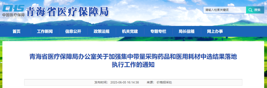 6月5日下午,青海省医保局印发《关于加强集中带量采购药品和医用耗材中选结果落地执行工作的通知》(以下简称《通知》)