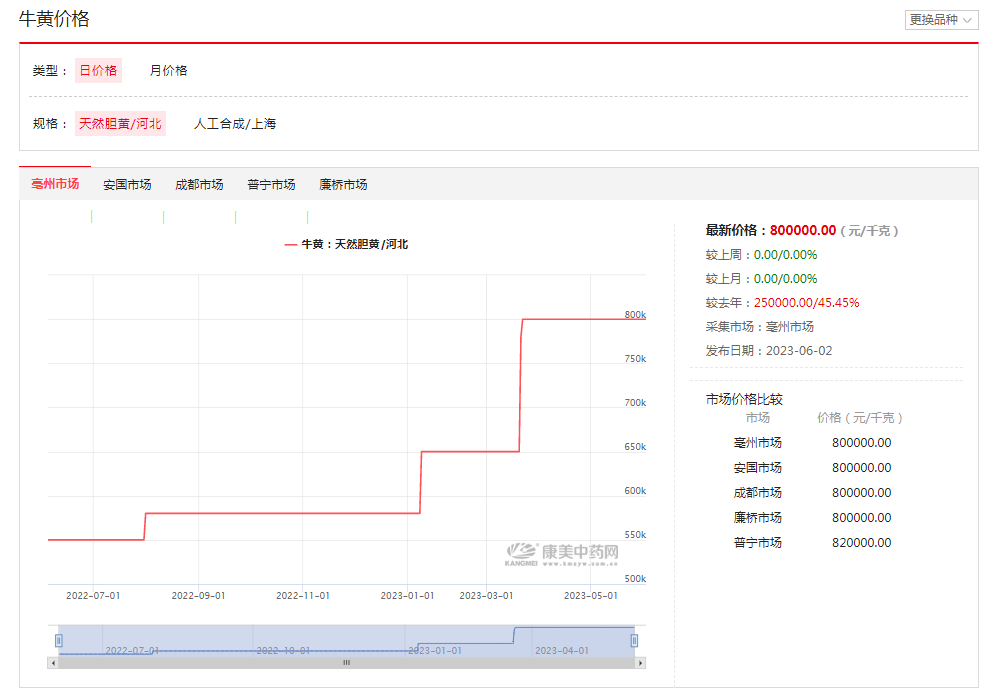 天然牛黄涨价突然且迅猛,也体现在各大中药材数据分析网站。