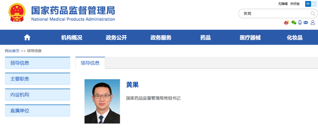 据国家药监局,4月16日下午,中央组织部有关负责同志出席国家药品监督管理局领导干部会议,宣布中央决定:黄果同志任国家药品监督管理局党组书记,免去李利同志的国家药品监督管理局党组书记职务。