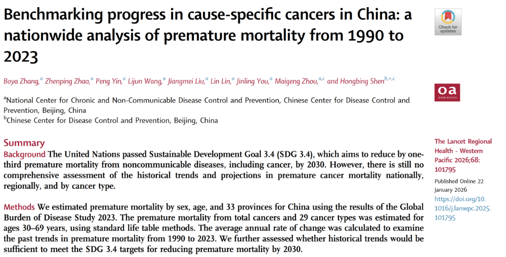 [1]Boya Zhang, et al. Benchmarking progress in cause-specific cancers in China: a nationwide analysis of premature mortality from 1990 to 2023. The Lancet Regional Health - Western Pacific. Volume 68,101795,March 2026. doi:10.1016/j.lanwpc.2025.101795医学界