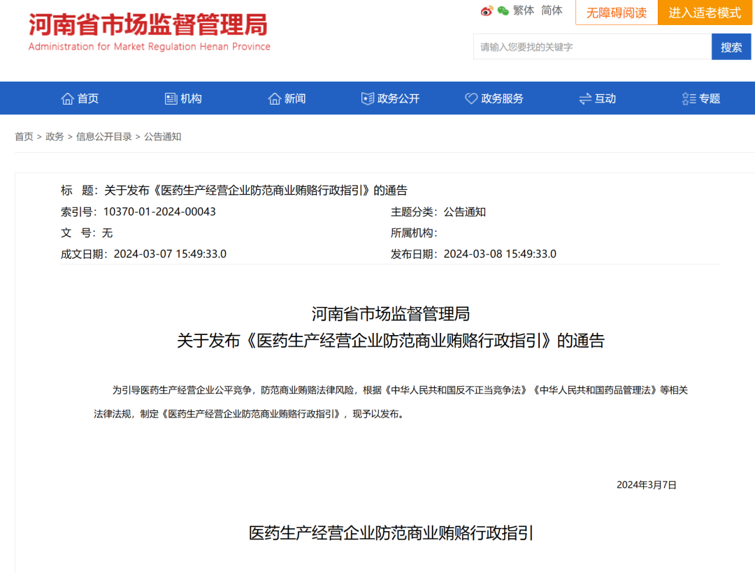 近期,河南省市场监督管理局发布《医药生产经营企业防范商业贿赂行政指引》(以下简称《指引》),依据相关法律规定,再次明确了商业贿赂行为及其行政处罚力度(河南省市场监督管理局网站,2024)。 《指引》是依据《中华人民共和国反不正当竞争法》《中华人民共和国药品管理法》等相关法律法规,以及治理医疗行业商业贿赂的有关规定制定而成。 《指引》指出:经营者在交易活动中可以以明示的方式,向交易相对方支付折扣,或向中间人支付佣金。但是,不论是支付方还是接受方,都应如实入账。禁止企业的经营者或代理人、药品采购方负责人或工作人员、使用相关药品的医师或药师等有关人员,在药品的销购中给予或收取回扣等不正当利益。 《指引》强调:假借咨询费、讲课费、推广费等各种名义或形式给予医疗机构或其内设科室、从业人员回扣,假借学术会议、科研协作、学术支持、捐赠资助进行利益输送,利用各种途径和方式,违规购买药品、医用耗材用量信息,都是法律禁止的商业贿赂行为。 《指引》明确:医药企业违法贿赂他人,市场监管部门将依法没收违法所得并处罚款,严重者将吊销营业证照。向国家工作人员行贿的,企业法定代表人、主要负责人、直接责任人等,将被终身禁止从事药品生产经营活动。实施商业贿赂构成犯罪的,将承担刑事责任。收受其他药品经营者或代理人贿赂的,五年内禁止从事药品生产经营活动。 2023年7月,国家卫生健康委会同9部门联合发文,开展为期一年的全国医药领域腐败问题集中整治工作(国家卫生健康委网站,2023)。在整治工作过程中,北京、福建、河南等地纷纷发文防范医药企业商业贿赂行为,并对医药代表、医师、药师等做出更细致的规范。 2024年3月,在全国两会期间,最高人民法院、最高人民检察院在工作报告中指出,2024年将强化对行贿犯罪的惩治(新华社,2024)。 与此同时,3月1日起正式施行的《中华人民共和国刑法修正案(十二)》也明确加大了对行贿罪的惩治力度,情节特别严重的,最高将被判处无期徒刑。并规定在生态环境、财政金融、安全生产、食品药品、防灾救灾、社会保障、教育、医疗等领域行贿,实施违法犯罪活动的情形将从重处罚(中国人大网,2023)。 医药领域是维护百姓健康的主阵地,更是老百姓最直接、最现实、最关心的健康权益。医药领域反腐工作是建设医药治理体系的重要组成部分,更是促进我国医疗行业健康、优质发展的重要组成部分。 作为从业者,药企、医药代表更应该自觉遵守法律规范,积极配合当地市场监管部门的监督检查。《指引》中强调,经营者妨害市场监管部门依法履行职责,拒绝、阻碍调查的,轻则责令整改并处罚款,重则交由公安机关进行治安管理处罚。 作为医疗机构负责人、医师、药师,则更应该牢记职责使命,将患者的健康权益放在第一位,坚决抵制以权谋私,收受贿赂的行为。