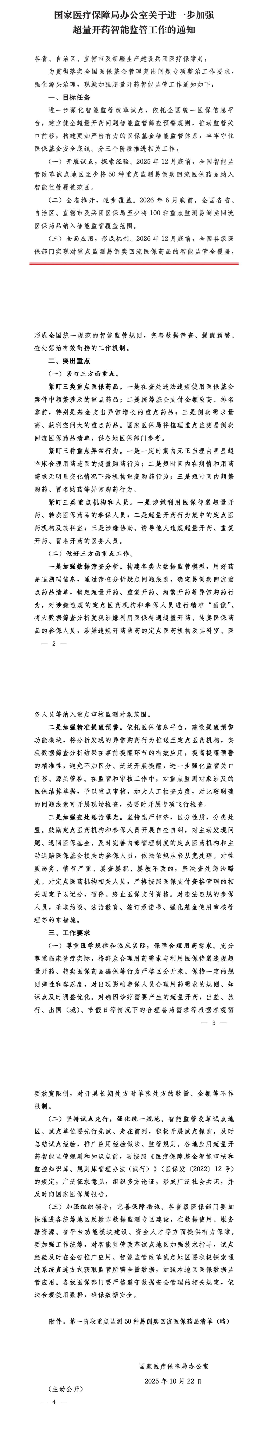 国家医疗保障局办公室关于进一步加强超量开药智能监管工作的通知
