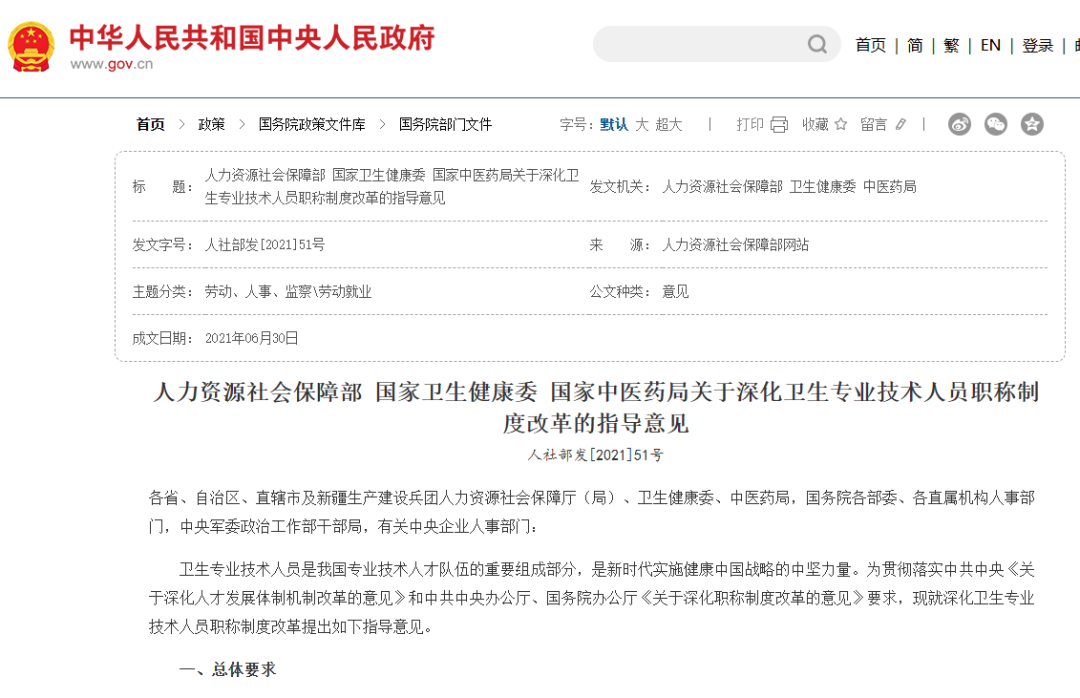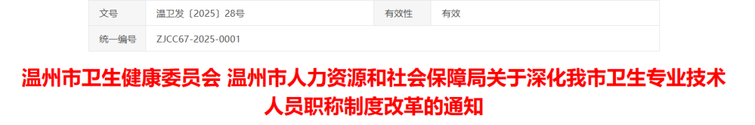 职称评审新规落地! 随着卫生健康事业迈入高质量发展阶段,卫生职称评审制度也面临新的挑战与变革。一段时间以来,“唯文章”“唯学历”“重科研、轻临床”等问题仍不同程度存在,基层一线反映强烈。 医学人才的成长,应回归临床实际。“早临床、多临床、反复临床”,不仅是优质医疗服务的基础,更是职称评审应坚持的导向。为此,国家人社部、国家卫生健康委和国家中医药管理局联合印发《关于深化卫生专业技术人员职称制度改革的指导意见》(人社部发〔2021〕51号),正式启动卫生职称制度的系统性改革。 响应国家号召,温州市卫健委、市人社局近日联合出台《关于深化我市卫生专业技术人员职称制度改革的通知》(以下简称《通知》),从标准体系、评价机制到组织管理,全方位推进职称评审科学化、规范化。 《通知》强调,本次职称改革要突出卫生行业特点和临床实践能力导向,破除唯文章、唯学历、唯奖励、唯“帽子”倾向,全面实行成果代表作制度,鼓励卫生专业技术人员扎根防病治病一线。 在完善职称评价方式方面,《通知》明确提出:医、药、护、技初中级职称列入全国卫生专业技术资格统一考试的专业,全部实行以考代评,实行全国统一考试,高级职称采取考试和评审相结合的方式评价。 健全职称体系 为适应医疗卫生行业的专业发展和人才培养需要,温州市将卫生专业职称体系细化为医、药、护、技、研五大类别,并依照岗位能力要求设立初级(士级、师级)、中级、副高级和正高级四个等级,进一步明确职称名称和职级划分。 在职称体系设计中,注重职称与职业资格制度的有效衔接。按照国家《医师法》和《护士条例》规定,参加相关考试并取得执业助理医师、执业医师或护士执业资格者,可分别视同取得医士、医师或护士职称。 此外,依据《中医药法》,通过中医医术确有专长人员资格考核并取得相应医师资格者,也可视同获得医师职称。 完善评价标准 为进一步优化职称评价体系,《通知》强化对医德医风的考核,把政治品德和职业道德作为评审首要内容,单位需建立医德考核机制,并将是否存在以权谋私、违规收受财物等行为纳入考核范围。同时,严格科研诚信管理,若申报人承诺不实或存在弄虚作假等行为,将被取消申报资格并撤销职称,严重者列入评审黑名单。 职称评价标准实行分层分类管理,突出职业特点,破除唯文章、唯学历、唯奖项等倾向。 温州市结合国家与省级标准,针对医疗、护理、药学、技术、中医、公共卫生、临床研究及基层卫生八个专业方向,分别制定个性化评价标准。不同类型单位按专业特点灵活设定考核重点,例如,市、县级医院及民营机构注重临床问题解决与科研兼顾,而基层医疗机构则强调临床能力和服务实效,弱化科研文章要求。高级职称申报者需通过全省统一的实践能力考试,考试成绩三年内有效,并须在任职期内考核累计五年合格,方具备申报资格。 此外,《通知》提出建立代表作制度,职称评审将聚焦技术人员实际成果。代表作可涵盖项目报告、病例分析、手术视频、技术规范、文章著作、专利成果等,并通过省级案例库公开公示,体现评审过程的公平与透明。 明确评价导向 在评价导向方面,《通知》提出晋升副高职称须具备一定的进修学习经历,市级单位医师需赴省级以上医疗机构进修累计三个月,县级单位为六个月,县以下单位为三个月,其他卫生专业技术人员亦需结合实际完成专业进修。海外进修时间可合并计算,晋升期间还需完成继续医学教育及公需科目学习任务。 同时,社会服务经历成为职称晋升的重要考量。医师在晋升副高前应至少累计一年在县级及以下或对口支援单位提供医疗服务,其中6个月服务需定点连续完成,其余6个月可通过参加巡回医疗、家庭医生签约服务、义诊、帮扶、山海协作服务、院前急救服务、突发事件应急处置、基层云诊室及医防融合双流动等形式予以累计。 晋升副高级职称后,在县级及以下或者对口支援的医疗卫生机构提供医疗卫生服务,累计一年以上的,同等条件下优先晋升正高级技术职称。 创新评价机制 《通知》推动评价方式创新,明确医、药、护、技类初中级职称全面实行“以考代评”,纳入国家统一考试,高级职称则采取“考试+评审”相结合;临床研究类初中级也执行“以考代评”,高级职称由省卫健委统一评审。 此外,全面推进卫生人才临床能力评价。依托省级数据平台,整合病案首页信息,通过分析手术量、平均住院日、并发症发生率等指标,从技术水平、质量安全、患者管理等维度综合评估执业能力,实现数据驱动、智能评估。 县域医共体和城市医联体职称评聘机制亦同步优化。根据牵头医院和分院的职责定位进行岗位分类与评审,成员单位高级岗位设置参照牵头医院标准,不得被挤占。对分院人员适当放宽学历要求,更注重全科诊疗、中医药、基本公卫等能力表现。推动人事一体化、岗位结构统筹,有效激发基层人才活力。 同时,畅通跨系列晋升通道。高等院校具备教学职称的专业技术人员,在附属医院从事临床工作并达到相应标准,可兼评卫生职称;已取得其他系列职称的人员如转岗从事卫生技术工作满一年并达成进修、服务、业绩等要求,也可转评同级职称,真正实现人才流动与专业成长的良性衔接。 深化自主评聘改革 围绕提升