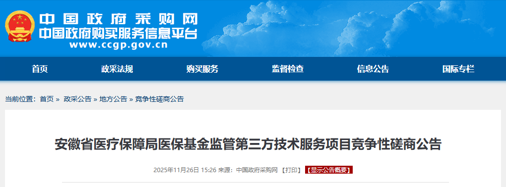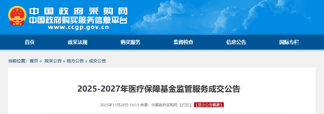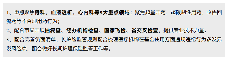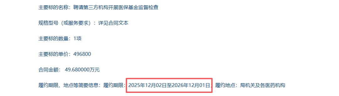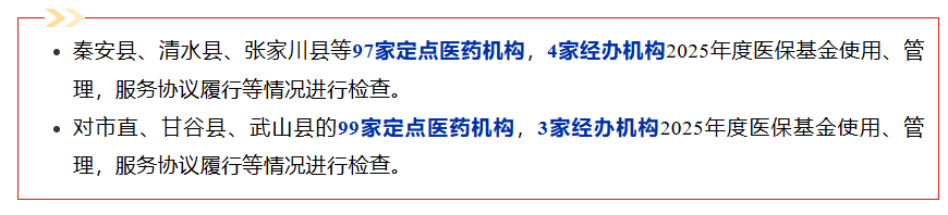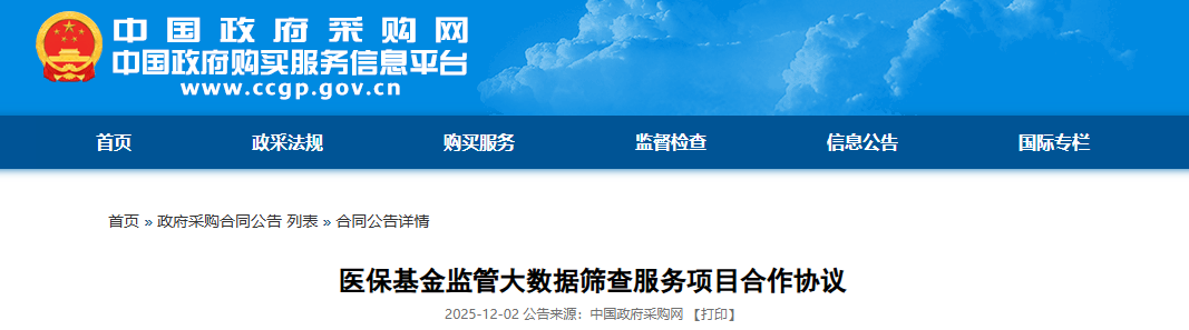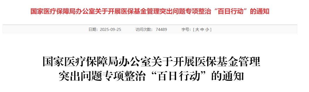 检查重点公布! 超500家! 医保局突袭,医院严查行动来了 近日,据中国政府采购网消息,江苏省南京市医保局采购的《2025-2027年医疗保障基金监管服务》,由泰康人寿保险有限责任公司江苏分公司成功中标,这标志着新一轮飞检行动即将展开。 公告指出,为打击医疗保障领域的违法违规行为,南京市医保局积极引入第三方专业机构,对全市的定点医疗机构、定点零售药店展开为期3年的医保基金监管检查。其中包括: 此外,通过第三方专业团队加入,本次南京市在医药检查颗粒度上,进行明显的细化和升级,检查内容包括: 值得注意的是,本次医保基金检查周期为3年。可见,当前医保基金监管已从“突击式”转向常态化、系统性治理。这也是医保监管迈向专业化、精细化、社会化的重要一步。 自年初以来,国家多次发文强调“严格医保基金监管”,此次南京市医保局将国家基金检查执行的颗粒度直接拉满,也透露出:当前医保基金检查深度与力度,非同一般。 多省医保局出手, 新一轮检查风暴来袭 虽已接近年末,但各地医保部门的检查力度,直增不减。 11月26日,安徽省医保局发布《医保基金监管第三方技术服务项目竞争性磋商公告》。 《公告》指出,自合同签订之日起一年内,通过第三方专业化服务,带动全省医保基金监管体系转型升级。 同时要求:第三方供应商配备不少于7人的专家团队,对省直、合肥市、芜湖市、宣城市、铜陵市、池州市、安庆市、黄山市医保基金监管提供技术服务。具体包括: 11月27日,甘肃省招标网发布《天水市2026年医保基金监管工作购买第三方专业机构服务项目竞争性磋商公告》。 公告明确,本项目分为两个采购包,通过第三方机构集中力量、统一标准进行拉网式检查,可以实现更全面、深入的专业化稽核。检查覆盖全市196家定点医药机构及7家医保经办机构。具体包括: 12月2日,武汉市医保局发布《医保基金监管大数据筛查服务项目合作协议》,直接明确自2025年12月2日起1年内,通过第三方机构,展开为期1年的医保基金严查行动。 当前,医保基金的检查主体,已从定点医院扩展到诊所和药店。此外,在大数据+第三方机构的深度查账手段下,检查的时间范围,也从几个月拉长至1-3年。 也说明针对医保基金不仅仅是短期打击,更意味着医保基金监管向“标本兼治”的深刻转型。这也正是国家层面的指向所在。 今年9月,国家医保局发布《国家医疗保障局办公室关于开展医保基金管理突出问题专项整治“百日行动”的通知》,提出:自即日起至2025年12月31日,在全国范围开展医保基金管理突出问题专项整治“百日行动”。 当前,医保基金检查已从“人工抽查”到“数智赋能”的升级。这标志着监管方式从过去依赖人工抽查的“人海战术”,转向以数据驱动、精准画像的“智慧监管”。 依托大数据技术和智能监管的力量,当前医保基金监管正在逐步构建一套全流程、全领域、全链条的智能监管防线,医疗反腐的穿透性也将更为强劲。 《国家医疗保障局办公室关于开展医保基金管理突出问题专项整治“百日行动”的通知》 上下滑动查看更多