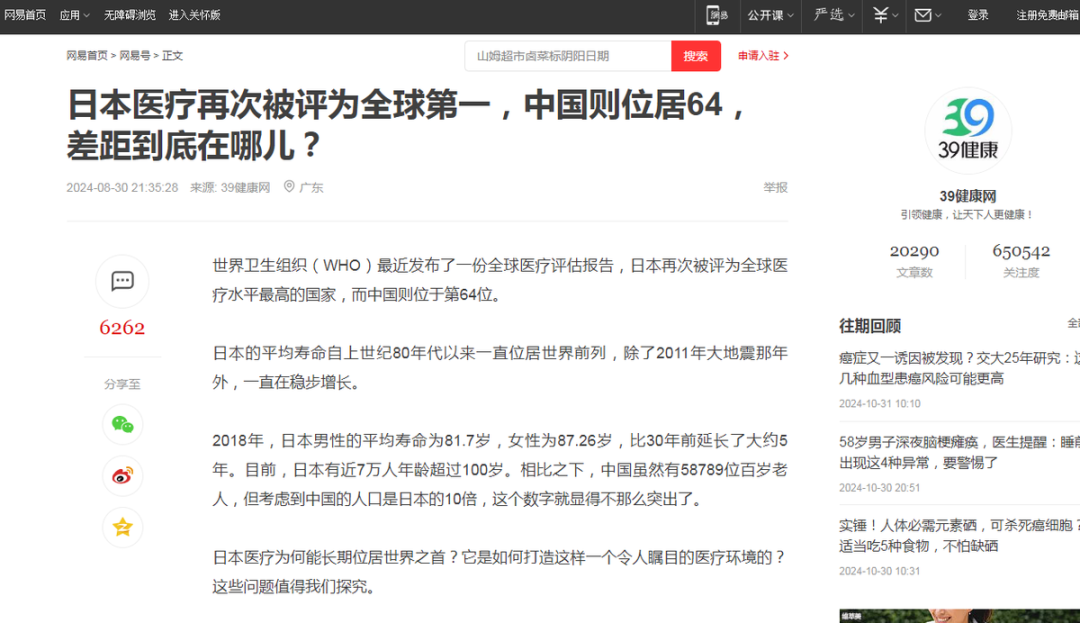 39健康网,日本医疗再次被评为全球第一,中国则位居64,差距到底在哪儿?