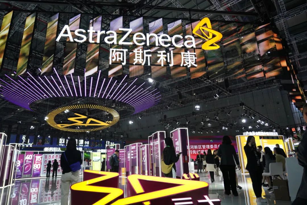 2023年11月7日,第六届进博会医疗器械及医药保健展区阿斯利康(AstraZeneca)展台。(视觉中国 / 图)