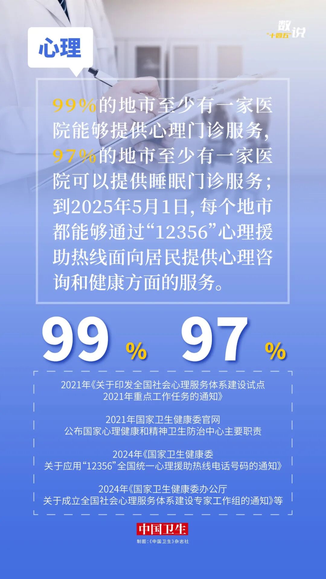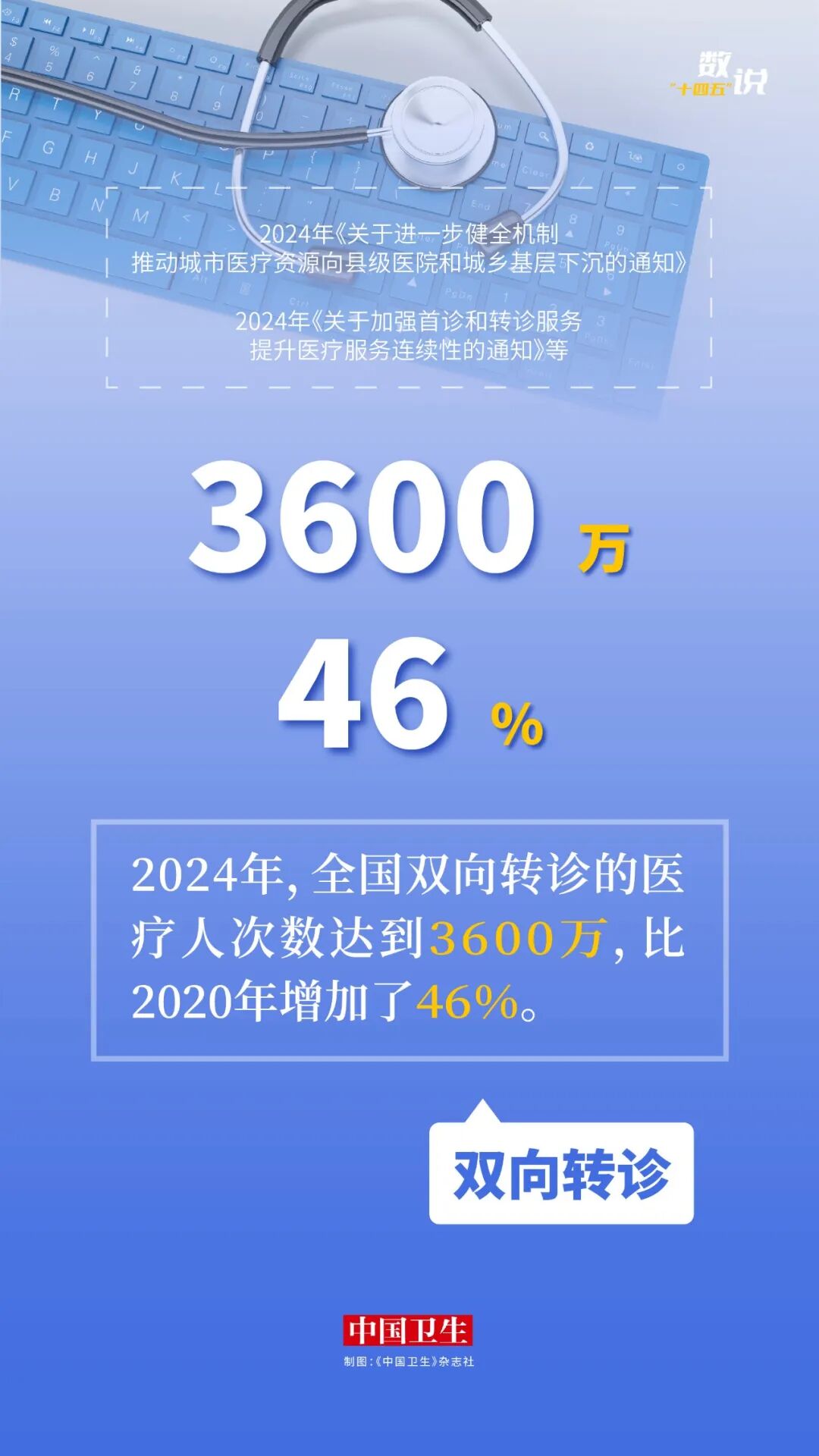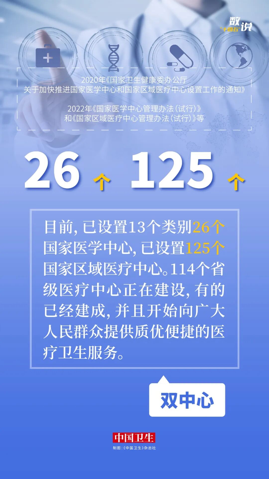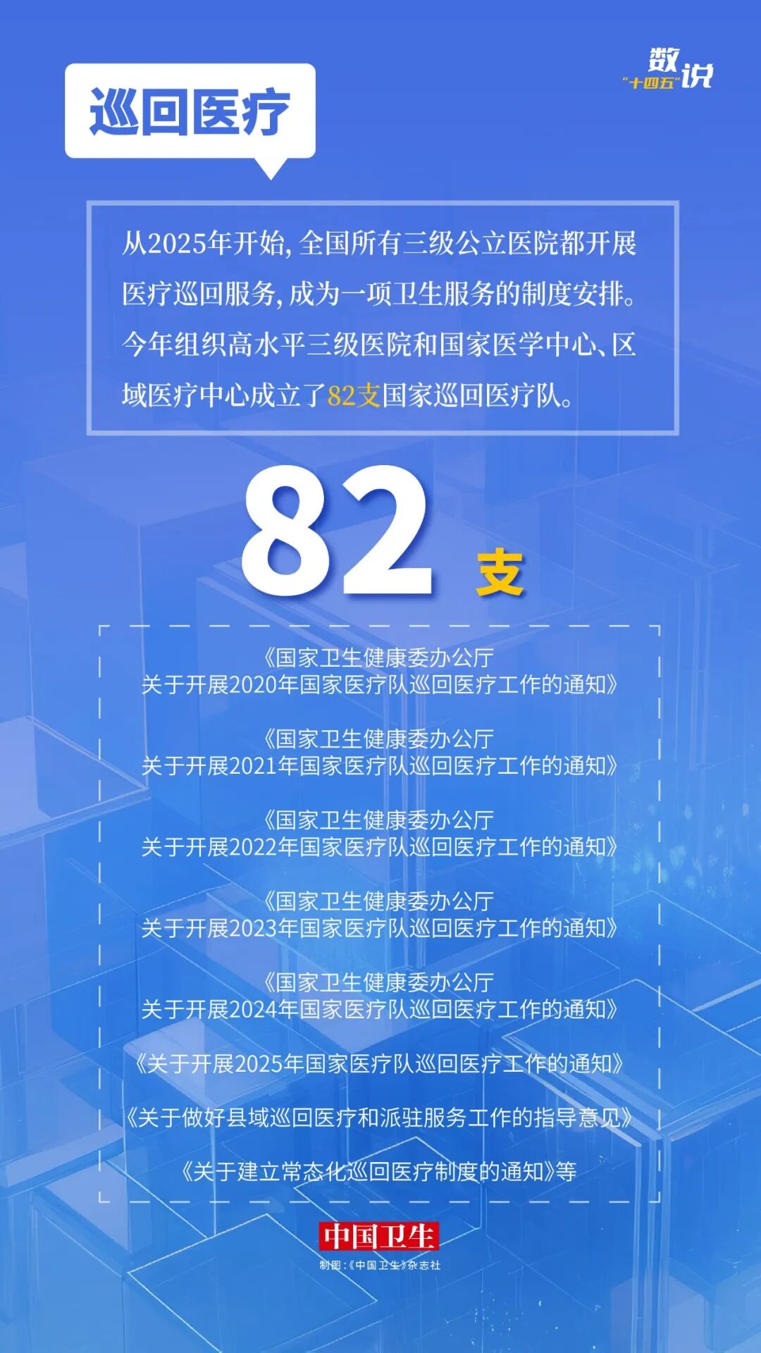 即将召开的全国两会将审议通过《中共中央关于制定国民经济和社会发展第十五个五年规划的建议》。“十四五”已圆满收官,编辑部小编们通过中共中央新闻发布会和国家卫生健康委新闻发布会等权威信息渠道,收集“十四五”期间的卫生健康成绩,以图片数说形式回顾“十四五”发展足迹,为即将开启的“十五五”注入信心、鼓舞士气。