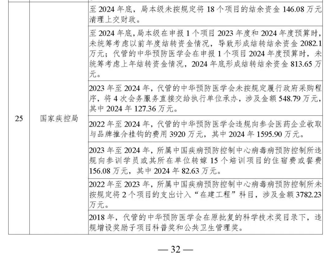 其中国家卫健委、国家疾控局、国家药监局都被审计查出问题,其中涉中华医学会多个问题。