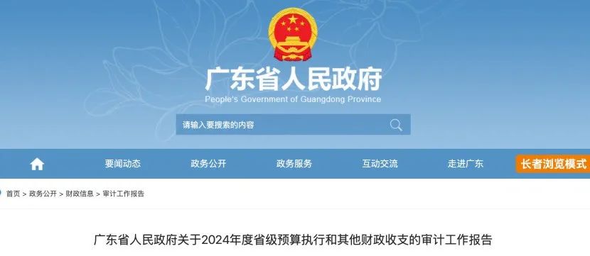 近日,广东省人民政府发布《广东省人民政府关于2024年度省级预算执行和其他财政收支的审计工作报告》。