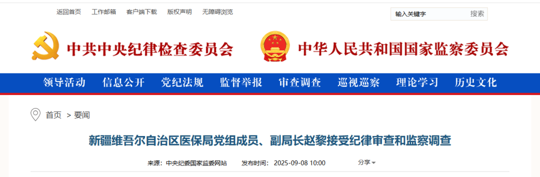 这两个月来,中央巡视组入驻,医疗反腐持续深入,又一医保局副局长任上被查了。 9 月 8 日,据中央纪委国家监委网站,新疆维吾尔自治区医保局党组成员、副局长赵黎涉嫌严重违纪违法,目前正接受新疆维吾尔自治区纪委监委纪律审查和监察调查。 一个月前,新疆卫健委副主任何永慧已经被查。 今年 7 月 31 日,据中央纪委国家监委网站要闻公告,新疆维吾尔自治区卫生健康委员会党组书记、副主任何永慧涉嫌严重违纪违法,目前正接受新疆维吾尔自治区纪委监委纪律审查和监察调查。 ▌ 巡视组入驻 16 省市,医疗领域多人被查 自今年 7 月份以来,中央巡视组入驻 16 省市期间,各省市陆续有相关案例公布,详情可浏览 MRCLUB 历史消息。 今年 7 月 19 日,中央纪委国家监委网站发布消息,中央第一巡视组巡视新疆维吾尔自治区工作动员会已经召开。 中央巡视组将在新疆维吾尔自治区工作 2 个半月左右。巡视期间设专门值班电话:0991-2380533,每天受理电话的时间为 10:00 至 20:00;专门邮政信箱:新疆维吾尔自治区乌鲁木齐市 A396 信箱。巡视组受理信访时间截止到 2025 年 9 月 23 日。