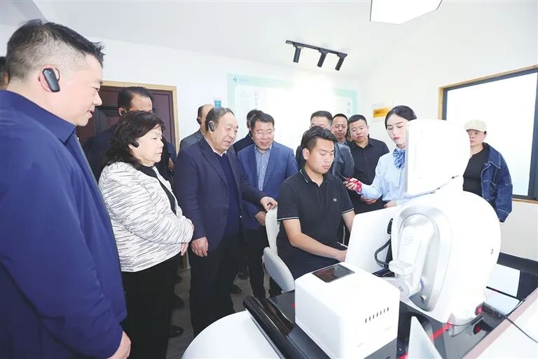 国医大师李佃贵(左三)等人在管城中医院体验自助问诊服务