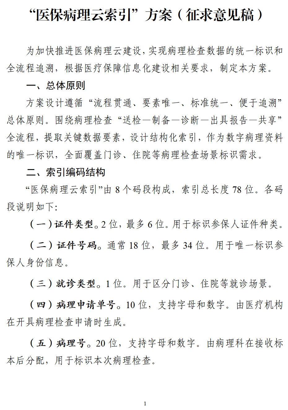 《“医保病理云索引”方案》《医保病理云数据集》面向社会公开征求意见建议。
