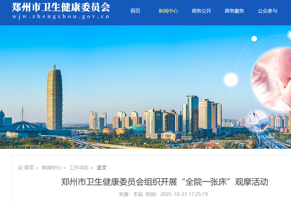 2025年10月23日,河南省人民政府发布《郑州市“全院一张床”改革打破医院科室壁垒 床位可共享 患者少等待》;同一天,郑州市卫生健康委发布《郑州市卫生健康委员会组织开展“全院一张床”观摩活动》,两篇文章都明确指出,按照郑州的规划,到2026年底,全市所有二级及以上医院都要全面推行“全院一张床”模式。