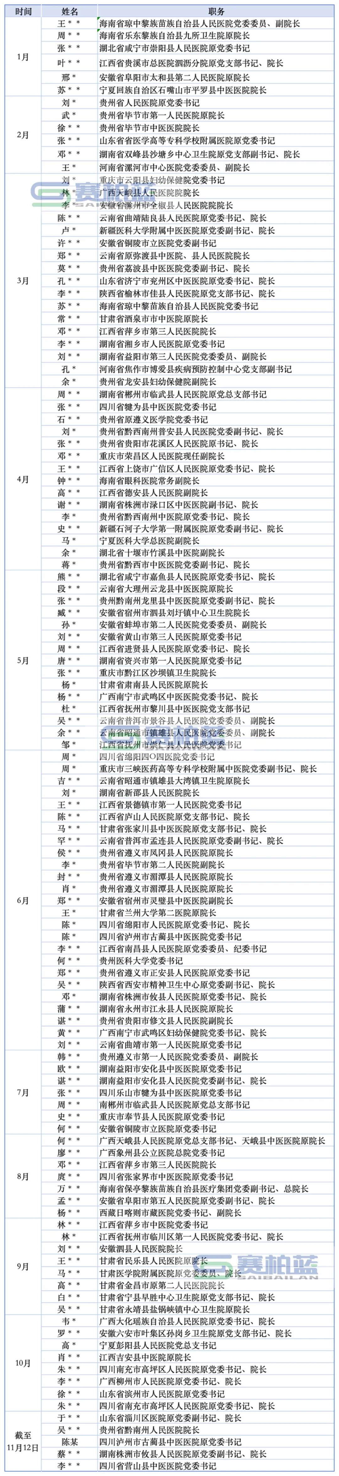 十一月刚过去12天,全国至少已有5名医院党委书记、院长被查。 01 严查“一把手”腐败 又一批医院院长落马 11月10日,山东省淄博市淄川区纪委监委网站发布消息称,淄川区医院原党委副书记、院长于某庆涉嫌严重违纪违法,目前正接受审查和调查。 此前于某庆先后荣获山东省卫生厅“纪检工作”三等功、淄川区优秀党务工作者、山东省优秀院长等多项荣誉。 11月5日,据贵州省黔南州纪委监委消息,黔南州人民医院院长吴某平涉嫌严重职务违法,目前正接受监察调查。 仅11月3日一天,四川和湖南两地,3名医院院长同时被通报: 四川古蔺县:古蔺县中医医院原党委书记陈某,严重违纪违法被开除党籍和公职。同时,将其涉嫌犯罪问题移送检察机关依法审查起诉,所涉财物一并移送。 通报称,陈某收受可能影响公正执行公务的礼品;接受可能影响公正执行公务的旅游活动安排;利用职务上的便利,为他人在资金拨付等方面谋取利益并收受财物,数额巨大等。 四川营山县:营山县中医医院党委书记李某钦涉嫌严重违纪违法,目前嘉陵区纪委监委正对其进行纪律审查和监察调查。 李某钦2023年2月任营山县中医医院党委书记,短短履新两年多其任职生涯就戛然而止。 湖南攸县:攸县人民医院原党委副书记、院长蔡某德,涉嫌严重违纪违法,目前正接受攸县纪委监委纪律审查和监察调查。 从上述通报动向看,医药反腐的覆盖面已“无死角”。在空间上,已从大三甲医院下沉至区、县级等基层医院;在时间上,离任人员同样不能幸免。 就在11月5日,中纪委发布《守好群众“看病钱”》的文章强调,从公立医疗机构来看,重点关注医院党组织及班子成员全面从严治党责任落实、“三重一大”决策制度执行情况等。 紧盯“关键少数”、“一把手”,在此前国家卫健委等14部门联合发布的《纠正医药购销领域和医疗服务中不正之风工作要点》亦有体现——严格落实党委领导下的院长负责制。 据赛柏蓝不完全梳理,从今年年初至今,至少已有近120名医院党委书记/院长/副院长相继落马(文末附名单)。 02 从这些院长落马的医药腐败案件看,药品耗材采购、临床用药合理性是高危地带。此外,公益学术活动也是潜在风险区。这些医药腐败链条的背后,时常能看到药企的影子。 赛柏蓝梳理了其中与药企有关的风险点,供参考。 首先,在药品招标采购领域,问题频发。近段时间,多地公布了公立医院审计调查结果,揭示了药品耗材采购中的乱象。 如云南昆明有52家公立医疗机构在药品、耗材、设备等采购中,存在围标串标、规避招采程序等行为;广东6家医院则通过违规设置排他性参数,变相指定供应商,使招投标程序流于形式;宁夏银川某医院更因接受供应商“免费投放设备、捆绑销售试剂”的模式,增加了222.08万元的运营成本。 今年的《纠正医药购销领域和医疗服务中不正之风工作要点》明确强调,要发挥穿透式审计监督优势,加强医药行业专项审计。 一接近医院纪检监察系统的人士透露,重复采购、倾向特定供应商、泄露采购项目信息、擅自变更招标实质性条款、验收环节形同虚设以及在未验收合格的情况下提前付款或支付金额与合同不符等,均是检查重点。 临床用药合理性是医药反腐的另一个严查重点,医保的智慧监控正成为其中的关键抓手。 11月3日,国家医保局发布《关于进一步加强超量开药智能监管工作的通知》中提到,紧盯超量开药行为集中的定点医药机构及其科室,以及涉嫌协助、诱导他人违规超量开药、重复开药、冒名开药的医务人员。 上述人士分析,医生不合理用药行为背后,有的与药企挂钩。这其中对药企的要求是,不应通过任何方式暗示或鼓励医生进行不必要的用药,或优先使用价格高但疗效并非最优的产品。 而具体执行这些“暗示”的,常常是医药代表。这种行为已成为监管查处的重点,正如近期国家医保局发文所通报的,医药代表在其中的违规操作已无处遁形。详情查看:国家医保局发文,点名医药代表。 此外,一种更为隐蔽的腐败形式近年也悄然兴起,即打着学术或公益旗号进行利益输送。 《医疗机构工作人员廉洁从业九项准则》指出,严禁医疗机构工作人员以个人名义,或者以假借集体名义接受利益相关者的捐赠资助。 上述人士表示,对药企的要求是,药企对医疗机构慈善捐赠、科研资助、医学教育支持时,不能附带任何直接或隐性的条件,例如要求医院增加药品采购量或指定处方。 另外,药企以“科研经费”、“咨询费”、“讲课费”等名义,通过举办伪学术会议进行利益输送也是严查重点。在针对异常学术赞助进行溯源核查方面,纪检相关人员会验证学术活动的真实性、追踪资金流向、审视相关主体、评估学术产出是否与商业关联等。 附:2025年年初至今,医院书记/院长/副院长被查名单 来源:赛柏蓝