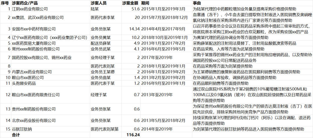 近期,国家医保局公开曝光的医药受贿案件中,鞍山市双山医院药剂科主任刘某红受贿一案中,仅一个医院药剂科主任受贿的背后,就牵出了近20家行贿企业。最终,这些涉案药企都将被严查,并采取限制挂网、配送等约束措施,再次释放出行贿受贿一起查的最严信号。