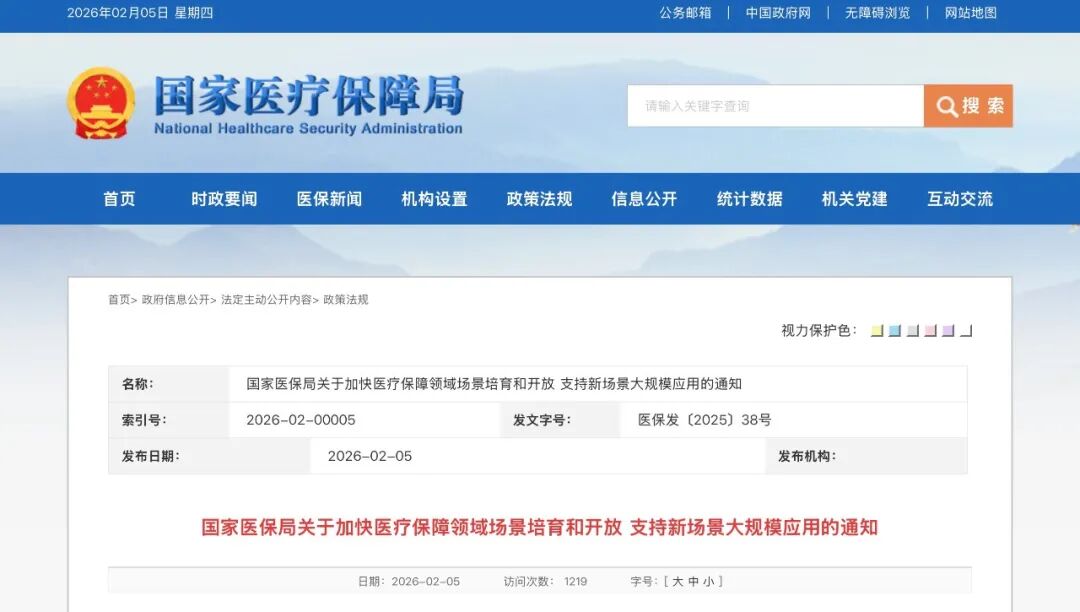 《通知》是“十五五”规划和《国务院办公厅关于加快场景培育和开放 推动新场景大规模应用的实施意见》在医保领域落实的重要举措,标志着医保领域的创新支持从“政策引导”迈向“场景赋能”的新阶段,而这也将助推我国医保体系朝着智能化、协同化和价值化方向演进。在保障人民健康的同时,也为健康产业发展注入新动能。