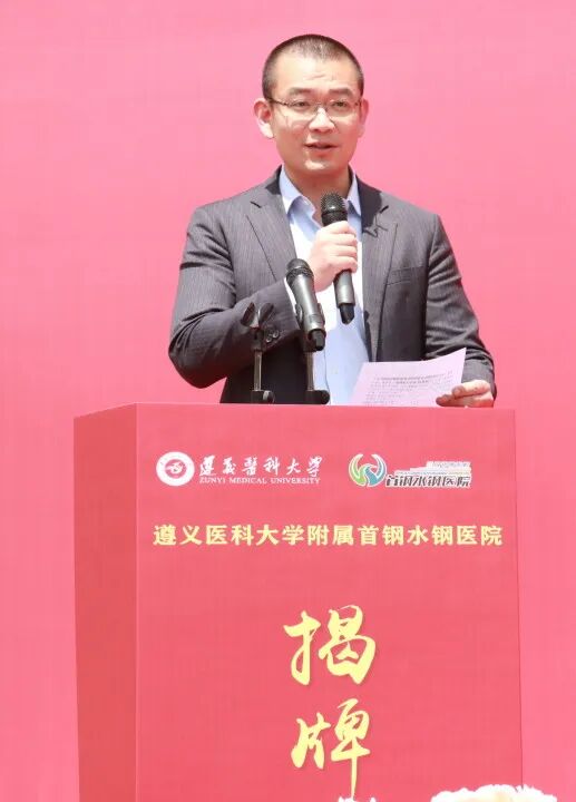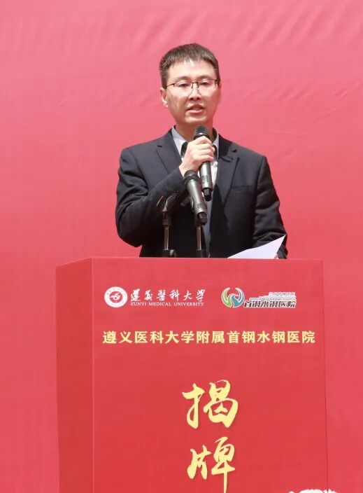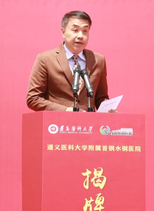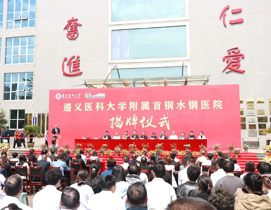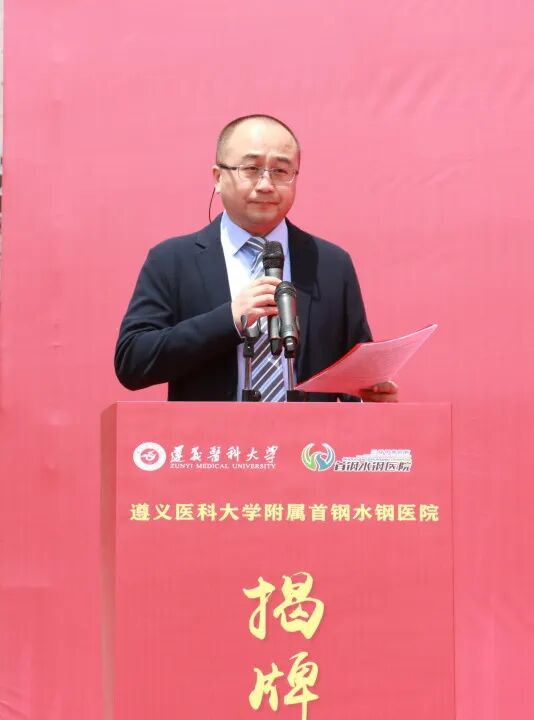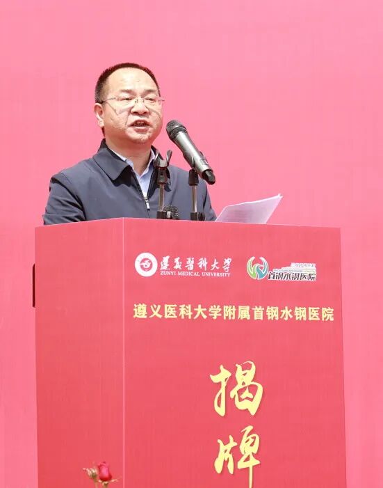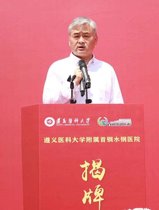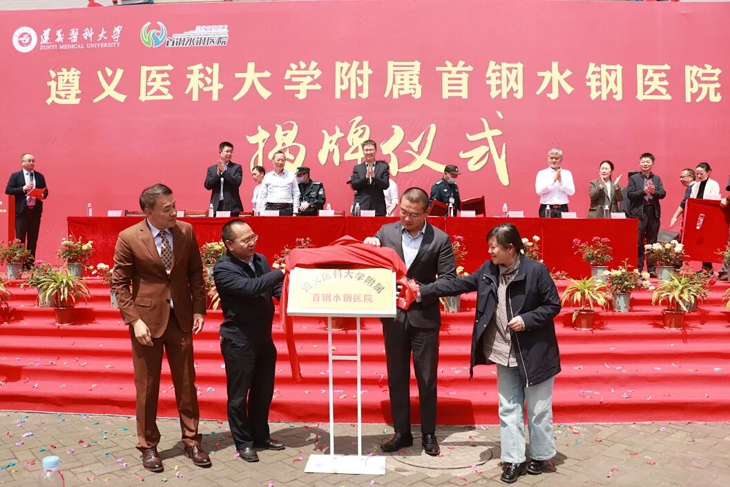 遵义医科大学党委副书记、校长龚其海,遵义医科大学党委常委、副校长龙奉玺,六盘水市卫健局党委书记、局长吴胜卫,六盘水市医保局党组副书记、副局长李成培,首钢水城钢铁(集团)有限责任公司党委书记、董事长张丙龙,首颐医疗总经理姜墨林,首颐医疗总院长顾晋,遵义医科大学党委委员、党委学校办公室主任刘伟,遵义医科大学党委委员、第一临床学院党委副书记、院长,附属医院党委委员、副院长王东红,遵义医科大学党委委员、医教协同综合管理处处长李岩,遵义医科大学教务处处长刘晖以及钟山区卫健局、水城区卫健局、市妇幼保健院等各兄弟单位代表出席了揭牌仪式。 仪式由首钢水钢医院党委书记冯光主持。 顾晋总院长在致辞中指出,此次首钢水钢医院成为遵义医科大学非直属附属医院,是对首钢水钢医院综合实力的高度认可,更是校院双方深化医教协同、推动高质量发展的战略抉择,标志着医院正式迈入“医教研融合发展”的全新阶段。相信首钢水钢医院将与遵义医科大学同心同向、并肩前行,以更精湛的技术、更优质的服务、更扎实的教学,助力健康贵州建设,为六盘水地区医疗卫生事业发展贡献新的更大力量。 姜墨林总经理在讲话中表示,此次揭牌是首钢水钢医院发展史上的重要里程碑,更是首颐医疗推动医教协同、赋能区域医疗升级的关键举措。首颐医疗将一如既往地支持首钢水钢医院的发展,在政策保障、资源配置、项目扶持等方面持续发力,为医院深化医教合作、提升综合实力创造良好环境。希望遵义医科大学与首钢水钢医院深化共建共享,同心协力、携手共进,共同书写医院发展新篇章,为保障区域百姓健康、推进医疗卫生事业高质量发展作出更大贡献。 吴胜卫局长在讲话中指出,首钢水钢医院多年来扎根六盘水、服务百姓健康,坚守公益初心、精进医疗技术,在急危重症救治、学科建设、公共卫生服务等方面担当作为,是区域医疗服务的重要力量。此次成功揭牌非直属附属医院,既是医院综合实力的充分体现,更是校院合作、医教协同的重要成果,标志着首钢水钢医院迈入医疗、教学、科研一体化发展新阶段,对优化全市医疗资源布局、提升区域医疗服务能力意义重大。市卫生健康局将一如既往做好服务保障,在政策支持、项目对接、资源统筹上全力赋能,为医院发展创造更好环境。 张丙龙书记在讲话中指出,首钢水钢医院作为保障企业职工健康、服务地方的重要医疗力量,依托首颐医疗资源与管理优势,叠加集团支撑保障,医院综合医疗服务能力稳步提升,切实守护着区域群众生命健康。首钢水钢公司始终全力支持医院改革发展,希望水钢医院以此为新起点,紧抓合作机遇,主动对接高校优质资源,精进医疗技术、提升服务品质,坚守服务职工、造福地方的初心使命,全力打造区域优质医疗服务平台,为地方卫生健康事业发展作出更大贡献。 龚其海校长在讲话中表示,遵义医科大学底蕴深厚、实力卓著,是我省医疗、教学、科研的标杆与高地;首钢水钢医院扎根六盘水数十载,始终以“守护百姓健康、践行医者使命”为己任,现已成为服务六盘水及周边区域群众健康的重要力量。此次揭牌是校院优势互补、资源共享的有力举措,既为遵义医科大学医学人才培养拓宽了实践平台,也为医院提升教学科研水平、强化学科建设注入了新动力。希望双方以此次揭牌为新起点,坚守育人与行医使命,进一步深化合作,携手打造校院合作新典范。 伴随着现场热烈的掌声,龚其海校长、龙奉玺副校长、姜墨林总经理、顾晋总院长共同为“遵义医科大学附属首钢水钢医院”揭牌。未来,双方将携手共进、深耕细作,把合作成果转化为守护人民健康的坚实力量,为六盘水人民健康保驾护航。 官网信息显示,首钢水钢医院始建于1966年6月,由首钢水钢公司兴办,现已发展成为集医疗、教学、科研、预防、康复、急救于一体的现代化大型三级甲等综合医院。医院占地面积91.3亩,建筑面积达5.3万余平方米。编制床位800张,现开放床位700张。