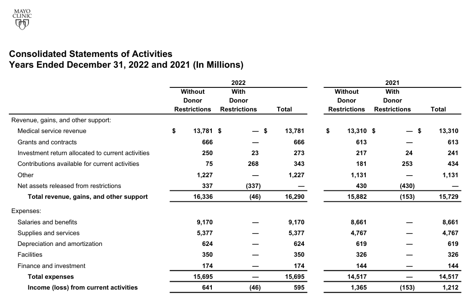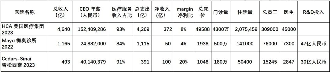 梅奥旗下有三家医院,2022年总收入高达1165亿人民币,净收入50亿人民币,净利润率为4%,医疗服务收入占总收入的84%。