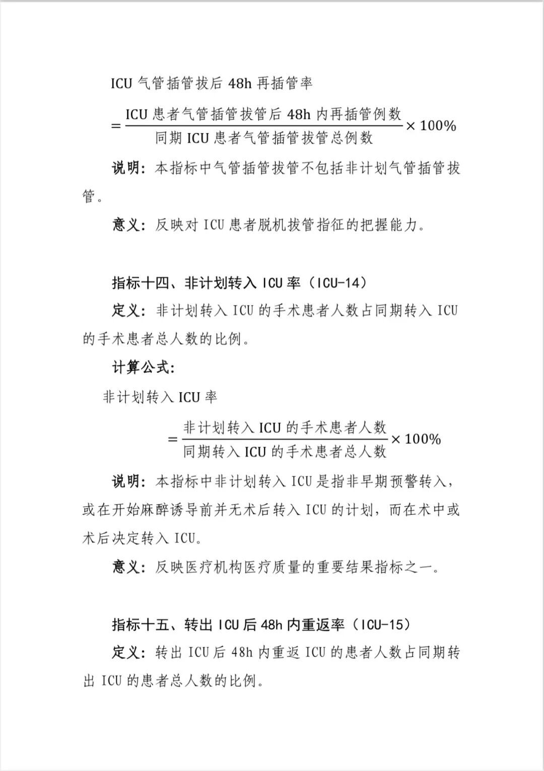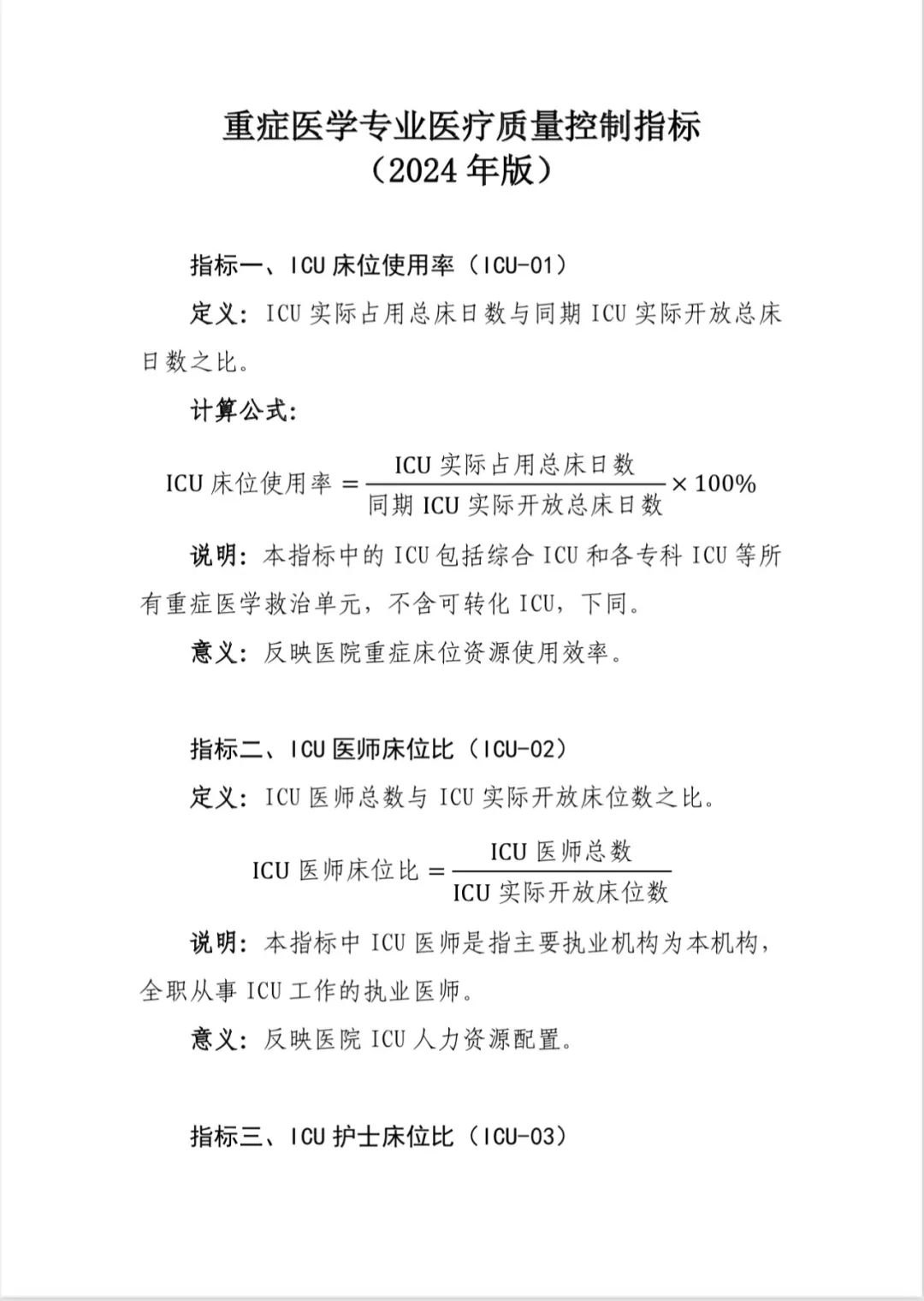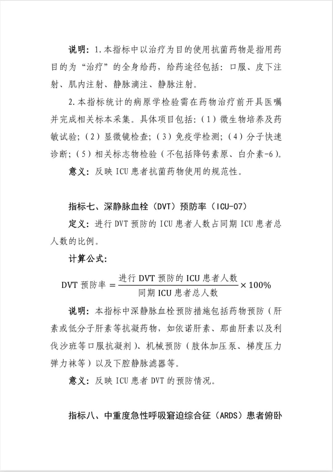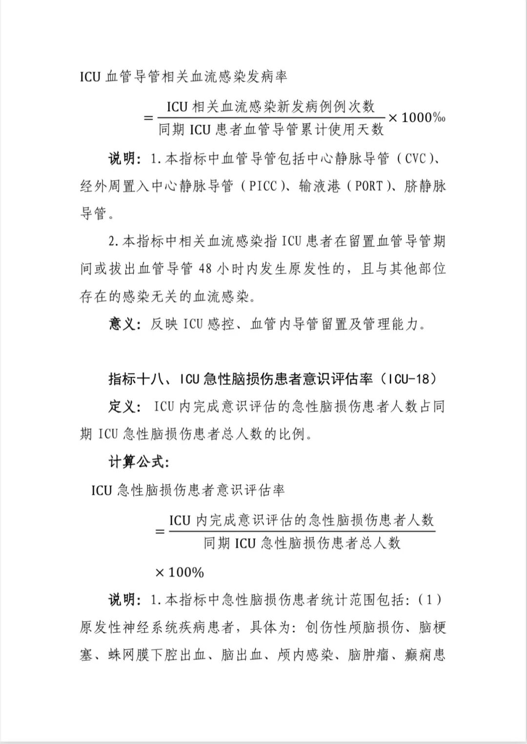 9月23日,国家卫健委发布《国家卫生健康委办公厅关于印发重症医学专业医疗质量控制指标(2024年版)的通知》。 省、自治区、直辖市及新疆生产建设兵团卫生健康委: 为进一步加强医疗质量管理,规范临床诊疗行为,提升医疗服务同质化水平,我委组织对重症医学专业医疗质量控制指标进行了修订,形成了《重症医学专业医疗质量控制指标(2024年版)》。现印发给你们,供各级卫生健康行政部门、相关专业质控组织和医疗机构在医疗质量管理与控制工作中使用。 本通知自印发之日起施行。《重症医学专业医疗质量控制指标(2015年版)》同时废止。 通知明确,降钙素原、白介素-6,不再纳入ICU抗菌药物治疗前病原学送检相关标志物检验统计。 对比废止前的2015版,可以看到2024版的相关调整。 2015版、ICU抗菌药物治疗前病原学送检率 定义:以治疗为目的使用抗菌药物的ICU住院患者,使用抗菌药物前病原学检验标本送检病例数占同期使用抗菌药物治疗病例总数的比例。病原学检验标本包括:各种微生物培养、降钙素原、白介素-6等感染指标的血清学检验。 计算公式: ICU抗菌药物治疗前病原学送检率=(使用抗菌药物前病原学检验标本送检病例数/同期使用抗菌药物治疗病例总数) ×100% 意义:反映ICU患者抗菌药物使用的规范性。 2024版、ICU抗菌药物治疗前病原学送检率 定义:以治疗为目的使用抗菌药物前病原学送检的ICU患者人数占同期使用抗菌药物治疗的ICU 患者总人数的比例。 计算公式: ICU抗菌药物治疗前病原学送检率=(以治疗为目的使用抗菌药物前病原学送检的ICU患者人数/同期使用抗菌药物治疗病例总数) ×100% 意义:反映ICU患者抗菌药物使用的规范性。 说明:本指标统计的病原学检验需在药物治疗前开具医嘱并完成相关标本采集。具体项目包括:(1)微生物培养及药敏试验;(2)显微镜检查;(3)免疫学检测;(4)分子快速诊断;(5)相关标志物检验(不包括降钙素原、白介素-6)。 2015版、ICU抗菌药物治疗前病原学送检率 定义:以治疗为目的使用抗菌药物的ICU住院患者,使用抗菌药物前病原学检验标本送检病例数占同期使用抗菌药物治疗病例总数的比例。病原学检验标本包括:各种微生物培养、降钙素原、白介素-6等感染指标的血清学检验。 计算公式: ICU抗菌药物治疗前病原学送检率=(使用抗菌药物前病原学检验标本送检病例数/同期使用抗菌药物治疗病例总数) ×100% 意义:反映ICU患者抗菌药物使用的规范性。 附:重症医学专业医疗质量控制指标(2024年版) 图文来源:国家卫健委 体外诊断价值圈