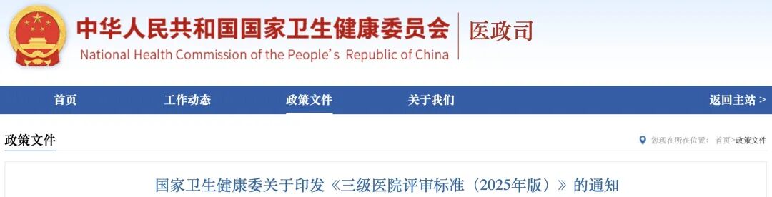 6月10日,国家卫健委发布《三级医院评审标准(2025年版)》(简称《标准》),共计两个部分97节232条指标(完整见文末),较2022年版本有多项调整。