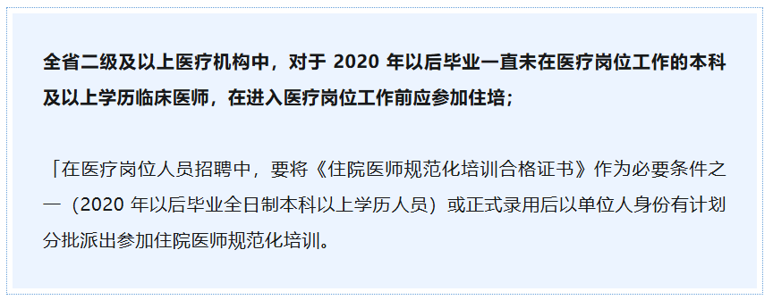 关于基层医院医生晋升职称,国家卫健委这样答复→ 规培为中国积蓄了大量中基层医疗力量,在最大程度上保障了国内医疗资源贫瘠之处的卫生医疗水平。 2024年,多地卫健委也纷纷表示,如海南省、辽宁省规定,没有规培证,社区、民营等都去不了;河南省规定没有规培证,不能考中级;河北省规定,没有规培证,不能在二级以上医院当医生…… 如今看来,规培已是必选项? 规培已是必选项? 多地卫健委对规培证做出限制 目前的政策都指明,规培证对于医生的职业发展至关重要,不同地区的政策对规培证的要求不同,但普遍趋势是规培证已成为医生就业和晋升的必要条件。 去年多省卫健委都纷纷对无规培证的医生执业范围做出了限制。 河北省 去年5月,河北省卫生健康委员会发布了《关于做好全省 2024 年住院医师规范化培训(西医)招收工作的通知》,其中提到: 辽宁省 辽宁省发布的《关于做好 2024 年辽宁省住院医师规范化培训招收工作的通知》规定: 上下滑动查看更多 海南省 去年3月,海南省卫健委发布了《海南省住院医师规范化培训管理办法》的通知(以下简称《办法》)。 图源:海南省卫健委 《办法》强调:住院医师规范化培训是临床医师培养必经的继续教育阶段。本办法施行后,全省所有新进医疗岗位(包括乡镇卫生院、社区医院、民营医院等)的本科及以上学历临床医师均应当接受住院医师规范化培训。 此外,文件第二十六条表示: 同时,《办法》中第三十八条明确:本科及以上学历毕业生参加住院医师规范化培训合格并到基层医疗卫生机构工作的,可直接参加中级职称考试,同等条件下优先聘用。 河南省 河南省卫健委发布的《关于做好 2024 年住院医师规范化培训招收工作的通知》中,提到了有关住培政策衔接方面的规定:2020 年及以后毕业的本科及以上学历,未取得住院医师规范化培训合格证的医师,不能参加卫生专业技术资格考试。 四川省 四川省卫健委也做出了相似的规定。在去年 4 月份发布的《2024 年住院医师规范化培训等招收工作方案的通知》中提到,将取得《住院医师规范化培训合格证书》作为临床医学(含临床医学、口腔医学、中医)专业中级技术岗位聘用的条件之一。 以上可见,规培成为晋升中级的必要条件,其实早在 2015 年就已经被提出了。陕西、贵州、广东等地都有相关政策。 然而,近日,国家卫健委在对人大代表建议的答复中,释放出一项关乎广大基层医生职业发展的重磅信号:基层医生晋升职称,将不以规培证作为必要条件。 国家卫健委明确: 这类医生晋升职称不以规培证作为必要条件 9月22日,国家卫健委发布《对十四届全国人大三次会议第6091号建议的答复》,针对代表提出的《关于基层医院医生晋升职称不应以取得规培证作为必要条件的建议》,明确表示,住院医师规范化培训,并不是申报职称的必要条件。这一表态明确了基层卫生专业技术人员职称评聘的政策导向。 图源:国家卫健委 答复指出,经商人力资源社会保障部,2021 年联合印发的《关于深化卫生专业技术人员职称制度改革的指导意见》所附的《卫生专业技术人员职称评价基本标准》中,并未将住院医师规范化培训作为申报职称的必要条件。 卫生系列职称制度改革注重基层实际,破除「唯证书」倾向,引导人才扎根一线。 基层职称评审更重实绩 国家卫健委在答复中表示,高度重视卫生专业技术人才队伍建设,鼓励卫生专业技术人员扎根防病治病一线。根据卫生系列职称制度改革部署,基层卫生专业技术人员的评价标准已有明确规定。 对乡镇卫生院和社区卫生服务中心卫生专业技术人员,重点考核提供基本公共卫生服务,以及常见病、多发病的诊疗、护理、康复等综合服务能力。可将常见病、多发病诊治专题报告、病案分析资料、工作总结等作为评审标准的重要内容,对论文、科研和职称外语不作要求。 此外,改革还体现出对基层人才的倾斜支持。凡在乡镇卫生院、社区卫生服务机构工作的医师、护师,可提前一年参加相应专业的中级卫生专业技术资格考试。对长期在基层服务、业绩突出、表现优秀的卫生专业技术人员,可适当放宽学历要求,同等条件下优先评聘。 分类评价引导人才流向基层 答复明确,对基层卫生专业技术人员,其评价标准适用《关于进一步改革完善基层卫生专业技术人员职称评审工作的指导意见》。该文件建立了区别于上级医疗机构的评价体系: 在高级职称评审方面,各省(区、市)可在卫生高级职称评审委员会中单独设立评审组。基层卫生专业技术人员在申报高级职称前,应完成规定数量的继续教育学分,同时定期到上级医疗卫生机构进修。 取得基层卫生专业高级职称的,原则上应限定在基层医疗卫生机构聘任。由基层医疗卫生机构向上级医疗卫生机构流动时,应取得全省(区、市)统一的卫生高级职称。 持续深化职称制度改革 国家卫健委表示,下一步将会同人力资源社会保障部门,指导督促各地切实落实卫生系列职称制度改革意见,不断完善符合基层卫生专业技术人员实际的职称评价标准,合理优化基层医疗卫生机构岗位结构比例,不断建强基层卫生专业技术人才队伍。 这一政策导向旨在鼓励卫生专业技术人员扎根基层,提升基层医疗服务能力,助力分级诊疗制度建设,切实保障基层群众健康。 此次明确回应代表了卫生职称制度改革的重要