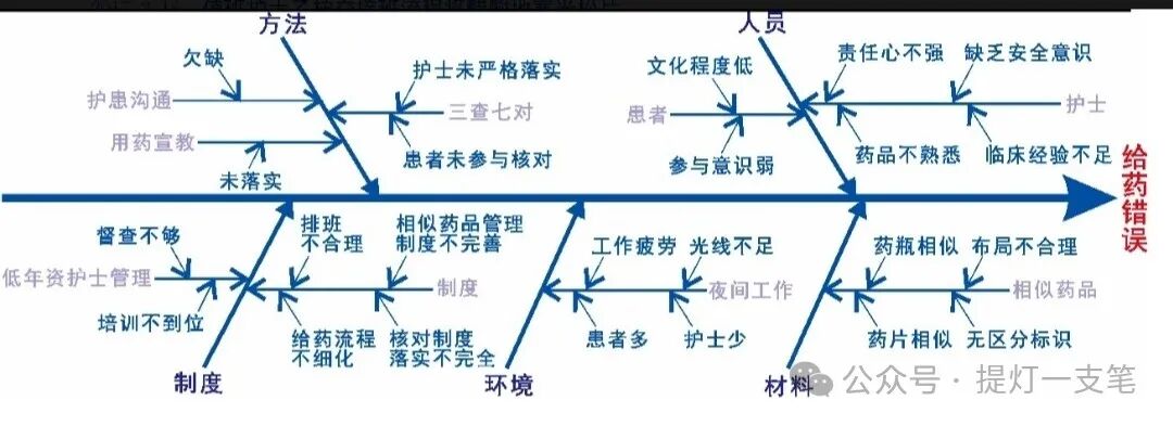 参考文献:李梦玲,王富兰,肖明朝,赵庆华,沈馨,江颖.1例给药错误的根本原因分析[J].中国卫生质量管理,2019,26(02):58-61+53.