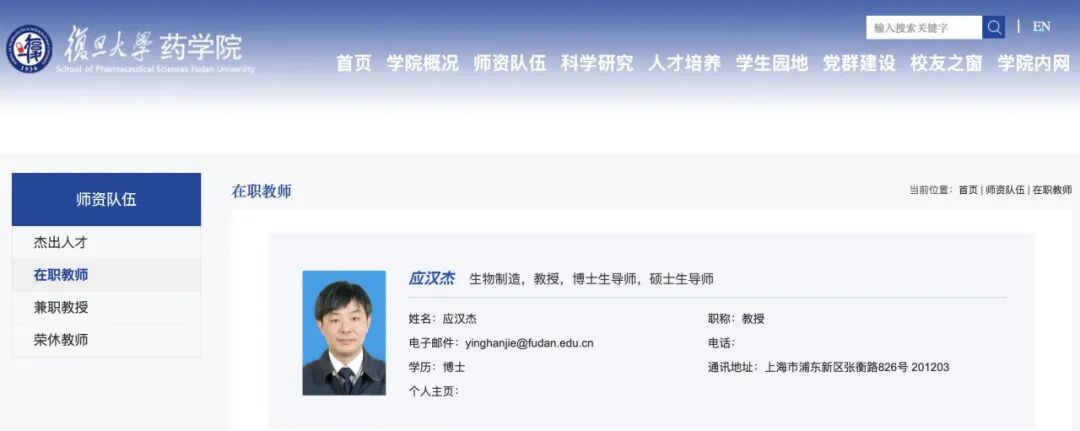 加盟复旦大学,任复旦大学药学院教授、博士生导师。