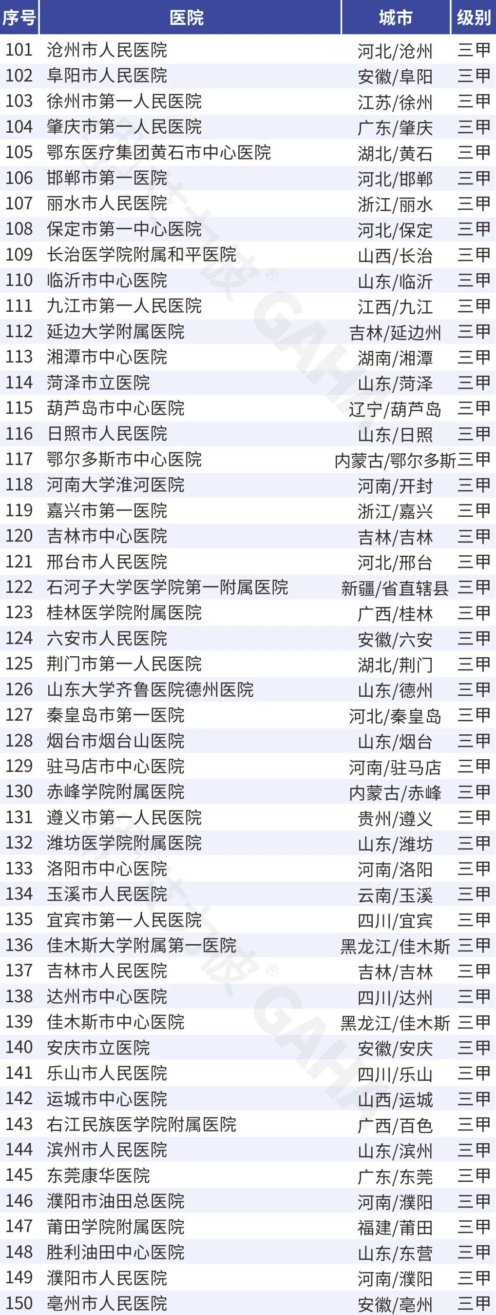 地级城市医院标杆医院:位于地级城市的综合医院、各级医学院附属综合医院和区级医院,不含中医医院、专科医院和部队医院。地级城市包括地级城市[不含省会(首府)城市和计划单列市]、自治州、自治盟、地区。
